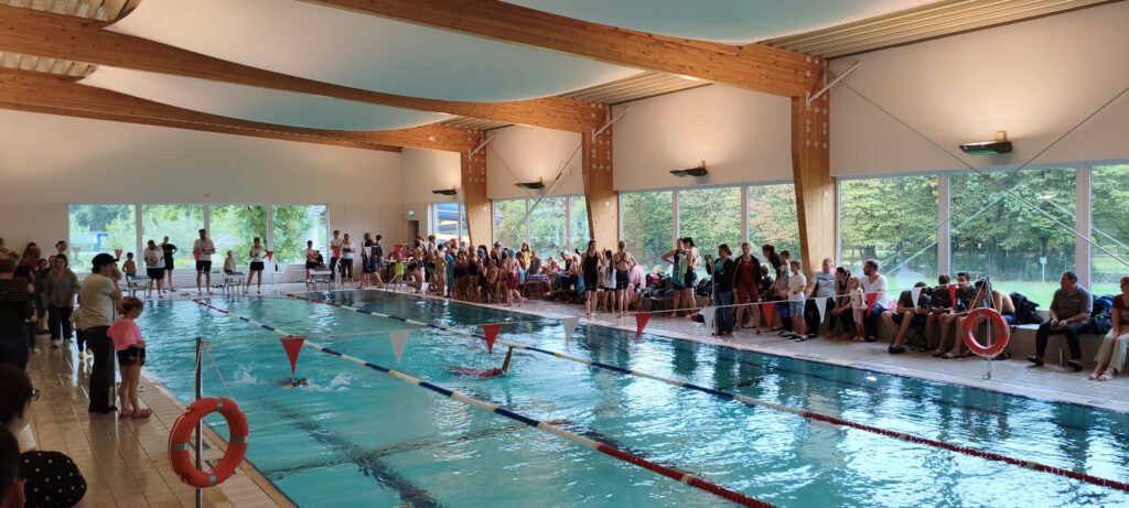 Seinen Höhepunkt erreichte der Wettkampf am Samstag, den 27.09.2025. Hier starteten pünktlich um 13 Uhr fast 100 aktive Schwimmer*innen aus verschiedenen Vereinenmit über 250 Starts. Die Athlet*innen, bei denen von Jahrgang 1970 bis Jahrgang 2019 alles dabei war, konnten sich jedoch nicht nur bei verschiedenen Kurzstreckendisziplinen messen.